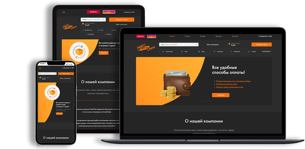 Разработка интернет-магазина автозапчастей запуск за 2 дня*