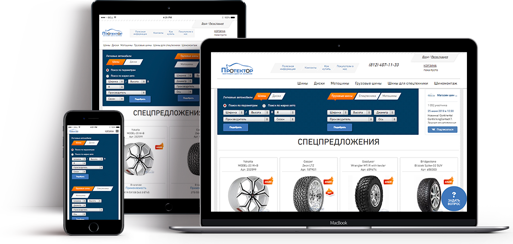 Разработка и поддержка сайта интернет магазина компании «Протектор»