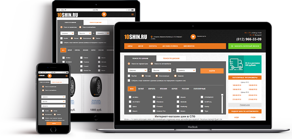В интернет-магазине “Шинодел” реализованы поиск автошинам, дискам